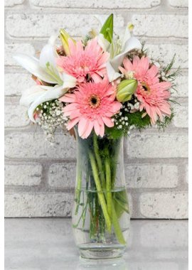 Cam Vazoda Lilyum Ve Kırmızı Güller