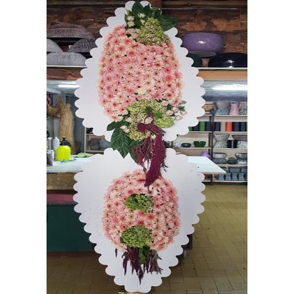 140 adet pembe gerbera ortanca ve çeşitli aksesuarlar kullanılrak hazırlanmıştır.