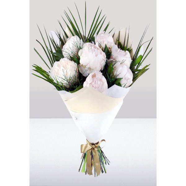 7 adet ithal beyaz şakayık ve çeşitli aksesuarlar kullanılarak hazırlanmış şık bir buket ile sevdiklerinizi mutlu edebilirsiniz.