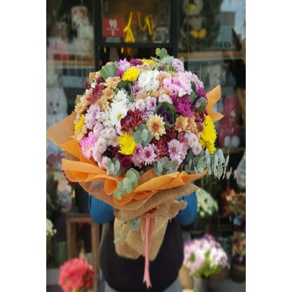 Renkli Kır Çiçekleri ve çeşitli aksesuarlar kullanılarak hazırlanmıştır.