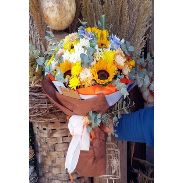 Renkli Kır Çiçekleri ve Ayçiçeği Buketi